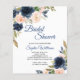 Budget Navy & Roze Bloemige Trouwfeest Uitnodiging