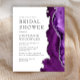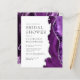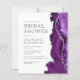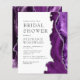 De rechterrand van deze elegante, moderne bruidsdoucheuitnodiging heeft een paarse waterverf agaatrand afgewerkt met faux silver glitter. De aanpasbare tekst combineert houtskoolgrijze serif-, koperplaat- en cursieve lettertypen op een witte achtergrond. De achterzijde is voorzien van een bijpassend paarse en zilveren agaatontwerp.