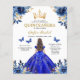 Vier uw speciale dag met de Floral Royal Blue Butterfly Princess Quinceañera Uitnodiging. Met een prachtige koningsblauwe achtergrond versierd met delicate bloemaccenten en betoverende vlinders, vangt dit elegante ontwerp de schoonheid en gratie van een quinceañera. Perfect voor een prinsessenfeest, de uitnodiging combineert tijdloze charme met een moderne touch. Nodig uw gasten uit om deel te nemen aan de magische festiviteiten en markeer deze onvergetelijke mijlpaal met een uitnodiging die de elegantie en sophisticatie van uw quinceañera-feest weerspiegelt.