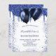 Een meisjesfeestelijke uitnodiging voor vrouwelijke en vrouwelijke verjaardagsfeestjes. Vooraan: Een witte achtergrond. Gedecorreerd met blauw vuil glitterdruppels, verfdruppelende blik en ballonnen. Pas een naam en partijdetails aan en voeg deze toe. De naam wordt geschreven met een handgeschreven stijlmanuscript met letters.