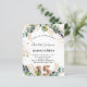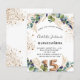 Voor een Quinceañera, 15e verjaardagsfeest. Een witte achtergrond met eucalyptusgroen en gouden bladeren. Golden faux glitter spots. Pas uw namen en trouwgegevens aan en voeg deze toe. Zwarte en gouden gekleurde letters. Nummer 15 wordt geschreven met ballonstijllettertype. Achterzijde: witte achtergrond en gouden faux glitter spots.