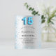 Een moderne, stijlvolle en glamoureuze uitnodiging voor het 15e verjaardagsfeest van een meisje. Een faux zilveren achtergrond, versierd met blauw gekleurd glitterstof. Personaliseer en voeg jouw naam en partijdetails toe. Nummer 15 wordt geschreven met een ballonstijllettertype, script.