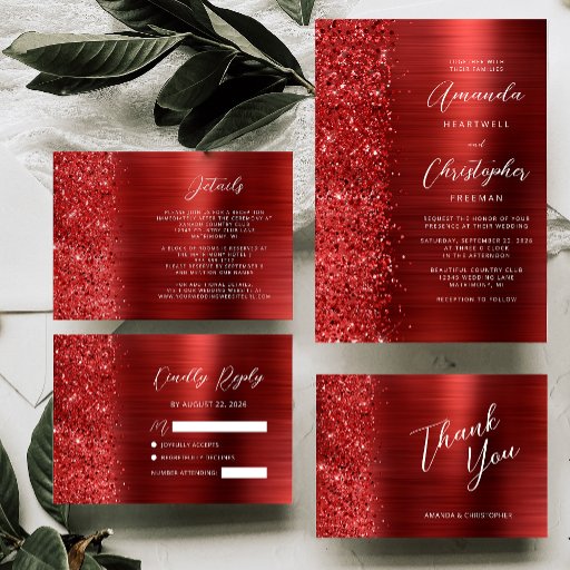 Glam Brushed Metal Glitter Red Wedding SuiteOntworpen door Akhates Designs