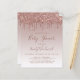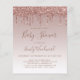 Deze trendy baby shower-uitnodiging is voorzien van een grens van het grof druppelend roos goud faux glitter op een gouden achtergrond van een ruim roos. De woorden "Baby shower"en de naam van moeder-om-te worden verschijnen in donker handschrijvend manuscript van het roos, met de resterende tekst in donker roos sans serif doopvont.