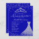 Modern Glam Royal Blue Diamond Tiara Princess Gown Dress Glitter Confetti Sparkle 15th Birthday Quinceanera Invitation