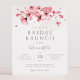 Een moderne elegante bloemige bruidsbrunch uitnodiging met roze waterverf kersenbloesems en moderne kalligrafie op een ambachtelijke papierstructuur.