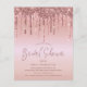 Een budgetvriendelijk alternatief van papier. Enveloppen zijn een optionele extra. Glam nep Glitter druppels in roze goud omzomen de bovenrand aan beide zijden. Bruidsfeest is geschreven in een modern stijlvol schrift in een bijpassende tint en de rest van de tekst kun je gemakkelijk personaliseren.