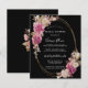 Roze pinda's en witte rozenknoppen creëer twee rustige Boho florale toedieningsvormen op een elegant, dun goudovaal lijst. Op de achterkant van de uitnodiging staat ook een kleine bloemetjesboeket. Alle tekst kan worden bewerkt.