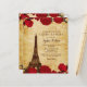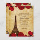 Budget Rustic Red Roses Eiffel Tower Quinceañera Quince Uitnodiging