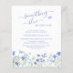 Bent u van plan een speciaal vrijgezellenfeest te organiseren? Deze bloemenbudget bruidsdoucheuitnodiging is versierd met blauw waterverf bloemetjes en vlinders. Er staat "Something blue before I do" in een stijlvolle typografie. Gemakkelijk aan te passen. Originele Waterverf © Michele Davies.