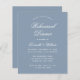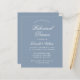 Een simpele uitnodiging voor een repetitief diner met een moderne kleur: stoffig blauw. Het heeft alleen witte tekst op stoffige blauwe achtergrond. De woorden "Dinner van de repetitie"en de naam worden geschreven in een elegant kalligrafisch manuscript.