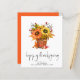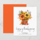 Zonnebloemen Red Berries Happy Thanksgiving. Een SMALLER 4,5 x 5,6 inch budget in een SEMI-GLOSS 110 lb KAART STOCK, vergelijkbaar met de dikte van een briefkaart. De enveloppen zijn lichtjes groter dan de kaartgrootte. Verstuur je geliefden Happy Thanksgiving-groeten met dit ontwerp van gele en oranje zonnebloemen in een roest houten verpakking en stijlvol handschrift, Happy Thanksgiving. Pas je namen eenvoudig aan.