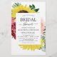 Budget Burgundy and Yellow Spring of Summer Blush Pink Floral (Flowers) Sunflower Botanical Eucalyptus Waterverf Wedding Bridal Shower Invitations on white background - omvat moderne, mooie en elegante scripttypografie met moderne botanische bladeren en groen voor de speciale Bride om te vieren.