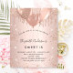 Voor een elegant Sweet 16, 16e verjaardag. Een roos gouden faux metallische achtergrond. Gedecorreerd met roos goud, roze faux glitterdruppels, verfdruppelende blik en ballonnen. Geef een persoonlijke naam, leeftijd en partijgegevens op en voeg deze toe. De naam wordt geschreven met een handgeschreven stijlmanuscript