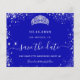 Een meisje en trendy Save the Date Card for a Sweet 16, 16th verjaardagsfeestje. Een royal blue gekleurde achtergrond. Gedemoreerd met faux zilveren glitterstof en een tiara, kroon. De tekst: Sparen de Datum wordt geschreven met een groot trendy hand lettered stijlmanuscript.