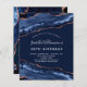 Een moderne, stijlvolle en glamoureuze uitnodiging voor een 30e (of om het even welke leeftijd) verjaardagsfeestje. Blauw en roos goudmakerij, marmerstenen achtergrond. De naam wordt geschreven met een modern handgeschreven stijlmanuscript met letters. Pas je partijgegevens aan en voeg deze toe.