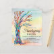 Nodig je vrienden uit voor je Friendsgiving-diner met deze unieke budgetuitnodiging. Het beschikt over een mozaïekboom in de kleuren van de regenboog op een waterverf achtergrond. Gemakkelijk aan te passen. Origineel mozaïek en Waterverf © Michele Davies.