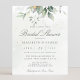 Een prachtige bruiddoucheuitnodiging met waterverf eucalyptus en goudbladeren.