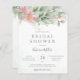 Mooie bruiddoucheuitnodiging met roze florale waterverf eucalyptus en goudbladeren.