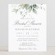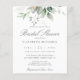 Een prachtige bruiddoucheuitnodiging met waterverf eucalyptus en goudbladeren.