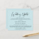 De optie voor de aankondiging van een budgetbruiloft als de omstandigheden vereisen dat u uw bruiloft omlaag, uitstelt of anderszins wijzigt. Deze moderne en elegante zee blauwe trouwupdate aankondiging kenmerkt de "Update van de Weddenschap"die in een stijlvol manuscript wordt geschreven. U kunt uw trouwupdate gemakkelijk personaliseren en bericht veranderen.