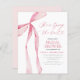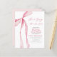 Vier de bruid-to-be met een charmante "Bow, She's Tying the Knot" bruids douche uitnodiging. Dit prachtige ontwerp heeft een speels boegmotief, dat de aanstaande bruiloft op een leuke en elegante manier symboliseert. Met zachte, romantische kleuren en stijlvolle typografie zet de uitnodiging de toon voor een vrolijk feest vol liefde en opwinding. Perfect voor een verfijnd maar grillig vrijgezellenfeest, deze uitnodiging legt de essentie van de gelegenheid vast, zodat gasten anticiperen op een gedenkwaardige gebeurtenis ter ere van de toekomstige bruid.
