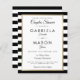 Deze elegante uitnodiging voor het budget koppel bruisfeest heeft een klassieke zwart-wit gestreepte achtergrond met een nep goud folie rand die de details van jullie koppel bruisfeest omlijst in moderne chic typografie. Ontworpen door Thisisnotme©