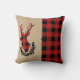 Stap in de vakantiegeest met dit stijlvolle Buffalo Plaid Cushion met een rood en zwart hert hoofdontwerp op gesimuleerd Kraft-papier.