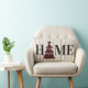 Voeg dit seizoen een kleine bijtende boerenveer toe aan uw vakantiehuis met deze rode en zwarte Buffalo plaid kerstboom Thuis kussen met een achtergrond van wit gewassen boorgruis of schilfering met zwarte letters voor de H M en E, met de rode en zwarte Buffalo Pset kerstboom in plaats van de letter O.