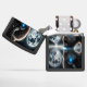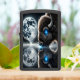Stap in een droomachtige scène waar majestueuze buffels uit een stilstaand meer drinken onder een glinsterende sterrenhemel. Hun gloeiende blauwe ogen en reflecties weven een magische verbinding tussen de aarde en het universum.