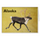 Un caribou taureau, ou renne, superposé à un arrière - plan en cuir bronzé. Le texte "Alaska" apparaît également. Le caribou (Rangifer tarandus), connu sous le nom de renne à l'extérieur de l'Amérique du Nord, est un cerf de l'Arctique et du subarctique. Bien qu'elles soient généralement nombreuses et nombreuses, certaines sous-espèces sont rares et l'une d'elles a disparu. Le mot inuit tuktu signifie : cerf qui ne cesse de bouger. Les caribous sont toujours en mouvement, allant du nord au molve, se dirigeant vers les terrains d'hiver et vers le sud en été. Le caribou est beaucoup en couleur et en taille. Chez les cerfs, les deux sexes poussent des bois, bien qu'ils soient plus gros chez les mâles et qu'il y ait quelques populations où les femelles n'en ont pas. La chasse au caribou et l'élevage de rennes semi-domestiqués (pour la viande, les peaux, les bois, le lait et le transport) sont importants pour plusieurs populations arctiques et subarctiques. Même loin de son aire de répartition, le caribou/renne est bien connu à cause du mythe, probablement né au début du 19ème siècle en Amérique, dans lequel le traîneau du Père Noël est tiré par des rennes volants, un élément populaire laïc de Noël. En Laponie, les rennes tiraient un trait. Répartition et habitat Le caribou/renne est une espèce très répandue et très nombreuse dans le nord de l’Holarctique, qui est présent dans la toundra et la taïga (forêt boréale). Elle a été trouvée à l'origine en Scandinavie, en Europe de l'Est, en Russie, en Mongolie et dans le nord de la Chine au nord du 50ème parallèle. En Amérique du Nord, il a été trouvé au Canada, en Alaska (États-Unis) et dans le nord des États-Unis conterminants, de Washington au Maine. Au 19ème siècle, il était apparemment encore présent dans le sud de l'Idaho. Il s'est aussi produit naturellement à Sakhalin, au Groenland, et probablement même à des époques historiques en Irlande. À la fin du Pléistocène, on a trouvé des rennes aussi loin au sud que le Nevada et le Tennessee en Amérique du Nord et en Espagne en Europe.Aujourd'hui, les espèces ont disparu de nombreuses zones de cette vaste aire historique, surtout des parties méridionales, où il a disparu presque partout. On trouve encore de grandes populations en Norvège, dans la région de Markku en Finlande, en Suède, en Sibérie, au Groenland, en Alaska et au Canada. Les rennes domestiques se trouvent surtout dans le nord de Fennoscandia et en Russie, avec un troupeau d'environ 150 à 170 rennes vivant autour de la région des Cairngorms en Écosse. Les derniers rennes de toundra sauvages restants en Europe se trouvent dans des parties du sud de la Norvège. Quelques rennes de Norvège ont été introduits dans l'île sud-atlantique de Géorgie du Sud au début du XXe siècle. Aujourd'hui, il y a deux troupeaux distincts qui y prospèrent encore, séparés en permanence par des glaciers. Leur nombre total ne dépasse pas quelques milliers. Le drapeau et les armoiries du territoire contiennent l'image d'un renne. Environ 4000 rennes ont été introduits dans l'archipel sub-Antarctique français des îles Kerguelen. L'est de l'Islande a un petit troupeau d'environ 2500-3000 animaux. Le nombre de caribous et de rennes a toujours fluctué, mais de nombreux troupeaux sont en déclin dans l'ensemble de leur aire de répartition. Ce déclin mondial est lié aux changements climatiques pour les troupeaux de caribous et de rennes du Nord, migrateurs et aux perturbations industrielles de l’habitat du caribou pour les troupeaux sédentaires et non migrateurs. La couleur de la fourrure varie considérablement, individuellement et selon la saison et la sous-espèce. Les populations du Nord, qui sont généralement relativement petites, sont plus blanches, tandis que les populations du Sud, qui sont généralement relativement grandes, sont plus sombres. C'est ce qui se passe en Amérique du Nord, où la sous-espèce la plus septentrionale, le caribou de Peary, est la sous-espèce la plus blanche et la plus petite du continent, tandis que la sous-espèce la plus méridionale, le caribou des bois, est la sous-espèce la plus sombre et la plus grande. Le manteau a deux couches de fourrure, un sous-manteau dense en laine et un dessus à poil long composé de cheveux creux et remplis d'air. Antlers Les bois de rennes repoussent chaque année sous une couche de fourrure appelée velours. Dans la plupart des populations, les deux sexes poussent des bois, qui (dans la variété scandinave) chez les mâles âgés tombent en décembre, chez les jeunes mâles au début du printemps et chez les femelles en été. Les bois ont généralement deux groupes de points distincts, un inférieur et un supérieur. Les rennes domestiques sont plus courts et plus lourds que leurs homologues sauvages. La taille des bois varie considérablement selon la sous-espèce (par exemple, plutôt petite et épineuse dans la sous-espèce la plus septentrionale), mais dans certaines sous-espèces, les bois de rennes sont le deuxième plus gros de tous les cerfs existants, après l'orignal, et peuvent atteindre jusqu'à 39 pouces (100 cm) de largeur et 53 pouces (135 cm) en longueur de poutre. Ils ont les bois les plus gros par rapport à la taille du corps chez le cerf.La taille de l'ancre joue un rôle important dans l'établissement de la hiérarchie des groupes. Nez et sabots Les rennes ont des nez spécialisés avec des os de turbinate nasal qui augmentent considérablement la surface à l'intérieur des narines. L'air froid entrant est réchauffé par la chaleur corporelle de l'animal avant d'entrer dans les poumons, et l'eau est condensée de l'air expiré et capturée avant que le souffle du cerf soit exhalé, utilisé pour humidifier l'air entrant sec et éventuellement absorbé dans le sang par les muqueuses. Les sabots de rennes s'adaptent à la saison : en été, lorsque la toundra est dou