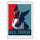 Bull Terrier Parodie sur Obama Hope Poster politique. Cela peut aussi représenter Pit bull, Pitbull, Staffordshire, Bully, American Bulldog, Terrier, bulldog, Majorque Mastiff, Olde Pit Bulldogge, Staffy, SBT, Stafford, Staffy Bull, Australian Staffordshire, Cane Corso, Continental Bulldog, Dogo Argentino, Alano Bulldog, Chien-taureau espagnol, Chien-taureau victorien, Dorset Olde Tyme Bulldog