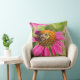 Bring the beauty of a summer garden into your home with this stunning throw pillow. Featuring a high-definition macro shot of a fuzzy bumblebee landing on a brilliant pink coneflower, this piece captures the intricate details of nature in vivid color.