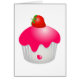 Illustration d'un cupcake glacé à l'air savoureux avec une fraise juteuse sur le dessus. Customisez facilement et choisissez votre propre couleur arrière - plan ou ajoutez du texte. Image disponible sur divers cadeaux et produits.