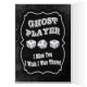 Dit is de perfecte kaart om te gebruiken als je een ontbrekende speler hebt. Profiteer gewoon van deze Ghost Player-kaart op de tafel om spelers te helpen te onthouden dat ze de dop voor hun ontbrekende vriend moeten draaien. Het grafische ontwerp kenmerkt een benauwde en blik. De tekst is golvend en ghofelijk. Met drie Bunco Dice. De tekst luidt: Ghost Player, ik Miss You, ik wou dat ik er was! Geweldig voor je volgende Bunco-avond. Zet deze kaart van de Speler van Ghost met uw andere levering Bunco binnen.