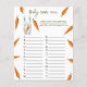 Gender neutrale baby douche uitnodigingen. Met het gezegde 'A LITTLE BUNNY IS ON THE WAY!', een afbeelding van een konijntje met wortel in poten, en vele oranje waterverf wortels. Overeenkomende objecten beschikbaar.