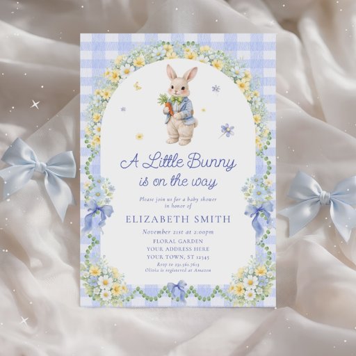 Bunny Pretty Rabbit Gingham Baby Shower Invitation