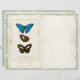 junk journal - pagina met een blauwe en bruine vlinder wetenschappelijke afbeelding aan de voorzijde en een bruine vlinder aan de achterzijde . Franse tekeningen en annotaties. Blauwgroen pagina's met de achtergrond en het perkamentagina's met gouden labels, plakband en stikkende details in het midden. Vouw de helft in om journaalpagina's te maken.