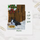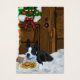 Le Boston Terrier attend sur le porche couvert de neige Père Noël pour arriver, gardant les cookies Père Noël. Magnifiques cadeaux de Noël, cartes de Noël, poste, vêtements, et plus encore.