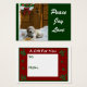 Le chiot Goldendoodle attend sur le porche enneigé Père Noël pour arriver, gardant les cookies Père Noël. Magnifiques cadeaux de Noël, cartes de Noël, poste, vêtements, et plus encore.