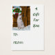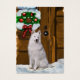 Beau art de vacances Samoyed. Le Samoyed attend sur le porche couvert de neige pour Père Noël d'arriver, gardant les cookies Père Noël. Magnifiques cadeaux de Noël, cartes de Noël, poste, vêtements, et plus encore.