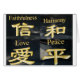 Les cadeaux et les marchandises Zen présentent des mots et des symboles chinois pour la fidélité, l'harmonie, l'amour et la paix.