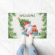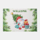 Petit gnome mignon avec des cadeaux de Noël et un arbre. Le cadre est fait de branches vertes de sapin sur un arrière - plan blanc