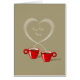 Carte de voeux d'amour avec deux tasses rouges de café, la vapeur formant un coeur. Entièrement personnalisable, vous pouvez le personnaliser avec votre propre texte. Convient à tous les âges.