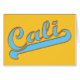 Cali, Californische strandsurfer-logo kunst in klassieke hemelblauw en neongeel, oud schoolschrift met een woep. Surft op met onze leuke, grappige, retro-designkerel. Door AngelCityArt.