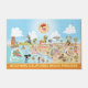 Een spectaculaire kaart van de cartoon van Zuid-Californië, die Los Angeles, Anaheim, Long Beach, San Diego en vele andere steden en de meeste stranden toont. Deze grilachtige illustratie zit vol plezier - een surfer hangt tien terwijl een zeemeermin op een rots springt, een dodelijke walvis uit het water lekt en een stier in een stierenvechter, allemaal onder de warme Californische zon die er hoog boven schijnt.