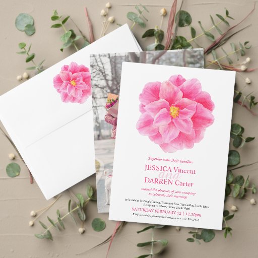 Camellia pink trouwdinermenu menu (Personaliseer deze collectie van deze onafhankelijke maker. Test)Camellia pink trouwdinermenu menu (Voorkant)Camellia pink trouwdinermenu menu (Staand voorkant)