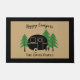 Deze camper thema deurmat staat voor u klaar om te personaliseren met uw eigen naam en groet. Creëer met een schattig mini trailer afbeelding tussen bomen in tinten zwart en bruin met zwarte tekst en achtergrond contrasten. Geweldig cadeau voor huisje of camper families.
