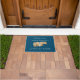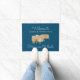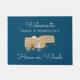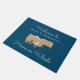 Welkom doormat voor campers in een 5e wiel RV. Donkere blauwe matten zijn in twee maten en hebben drie regels lichtgrijze tekst. In het midden staat een RV-afbeelding met een kleine klapstoel voor het "thuis op de wielen" van de kampeerauto, dat wil zeggen de monsterformulering. De naam of namen van de kampeerders kunnen worden opgenomen. Verander gemakkelijk de achtergrondkleur gebruikend het pas verdere gebied aan.