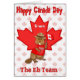 Leuk Canadees ontwerp heeft een golvende rode golven en een Maple-bladachtergrond. Schattigee bever in een Mountie Pet zwaait met een Canadese vlag. Tekst zegt... Happy Canada Day van The EH Team op de voorgrond. Inside tekst is klaar voor u om aan te passen.